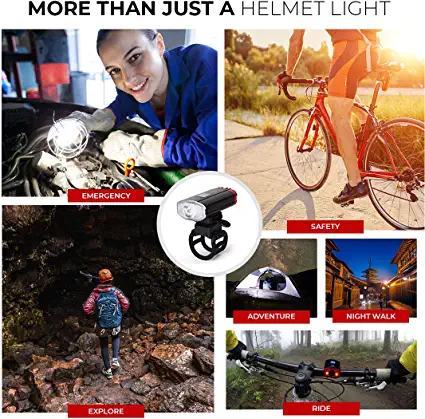 Front light also has a focused beam to lighten the road in the darkest night riding conditions. You and your loved ones can ride safer in any light condition. The helmet light has a 500 mAh high-capacity lithium-ion battery. Light lasts up to 22 hours. Perfect cycle lights for your long ride.